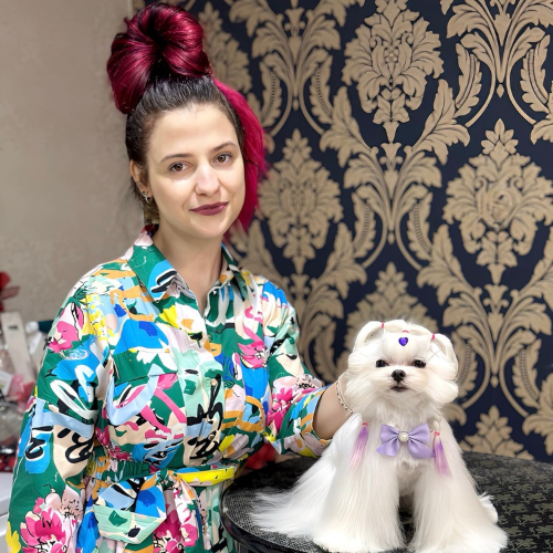 Raised in a family of breeders, Andreea Mihaela is a talented Romanian pet groomer specialized in Asian Fusion style. She is the co-owner of Bijou Pet, the most popular grooming salon in Romania, and also an instructor at Petglow Academy, where she teaches both Romanian and international students through exclusive one-to-one courses focused on Commercial Grooming and Asian Fusion techniques.