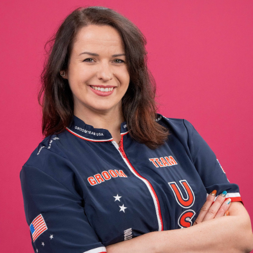 Her impressive competitive record features 7 Liz Paul Memorial Best Scissored Poodle wins, extensive coverage in Groomer to Groomer Magazine, and pivotal contributions to GroomTeam USA, helping secure gold, silver, and bronze medals at the World Grooming Tournaments in 2015, 2017, and 2022.